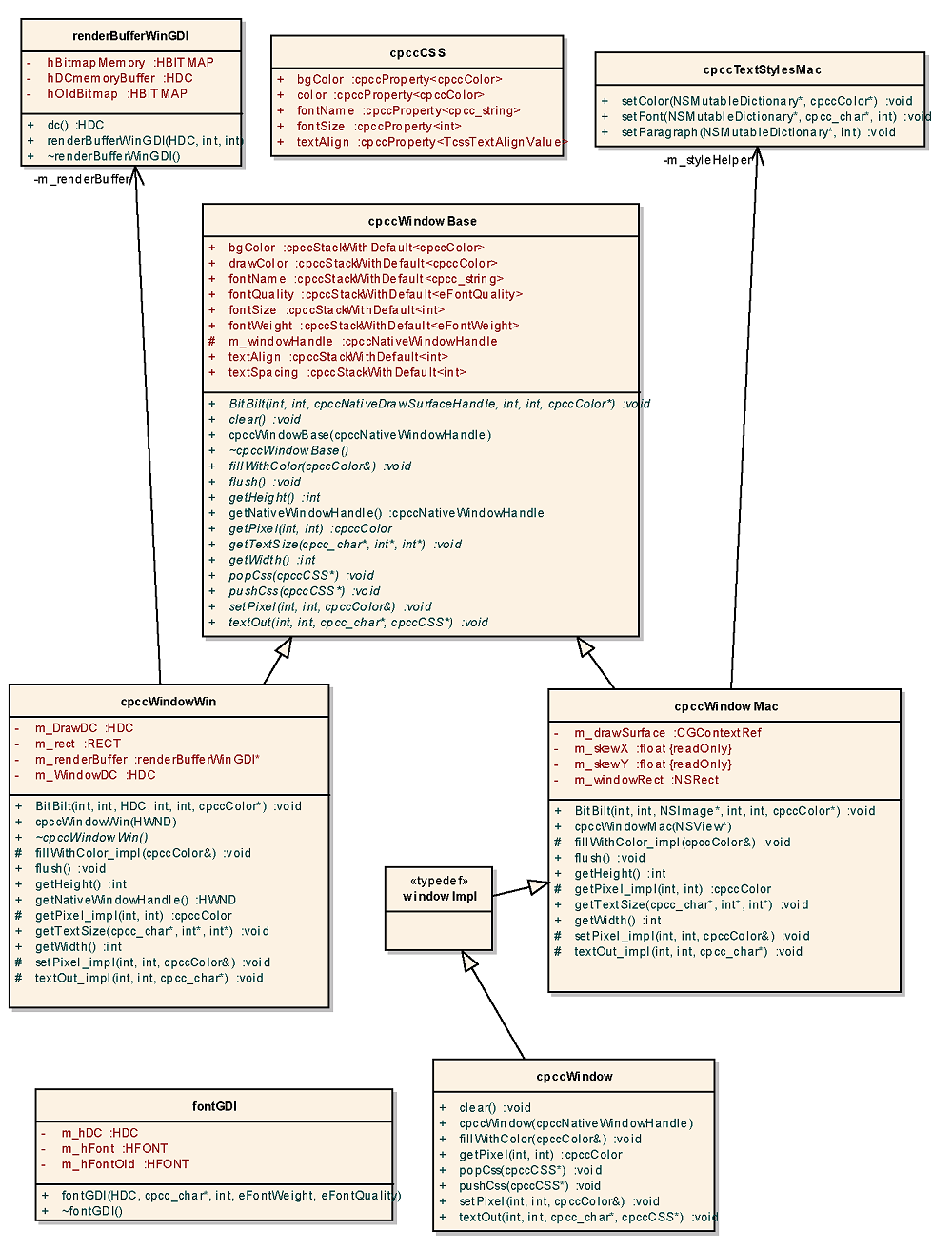 Class diagram of the cross platform "window" classes